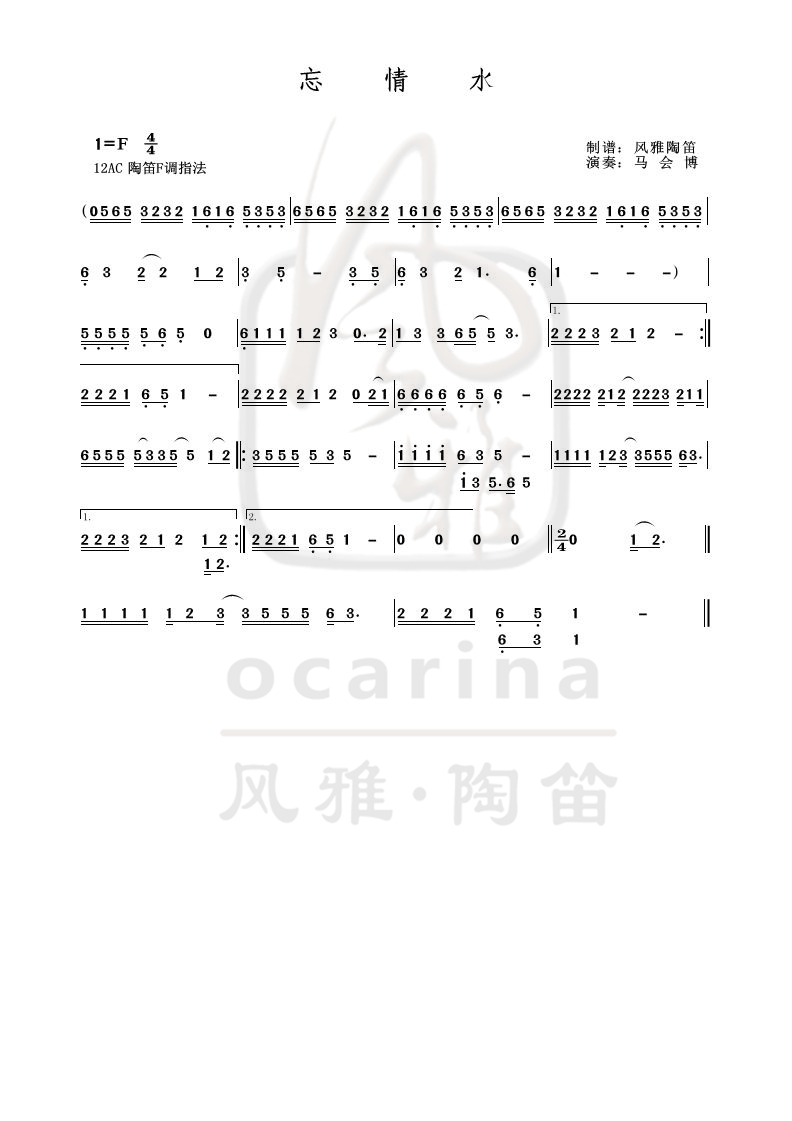 【忘情水】曲譜