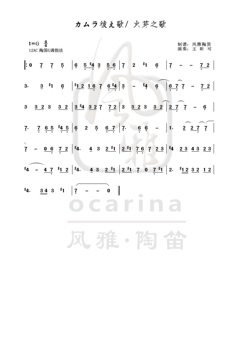 《カムラ祓え歌 火芽之歌》曲譜