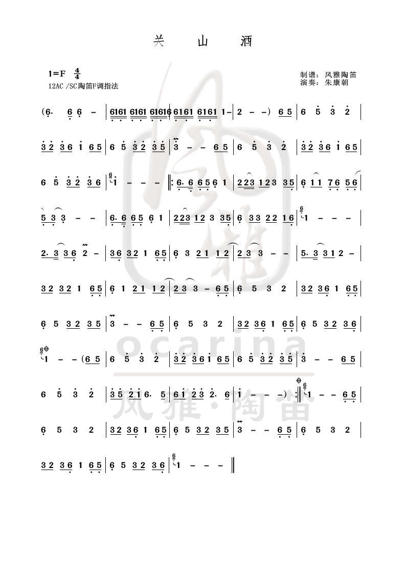 《關(guān)山酒》曲譜
