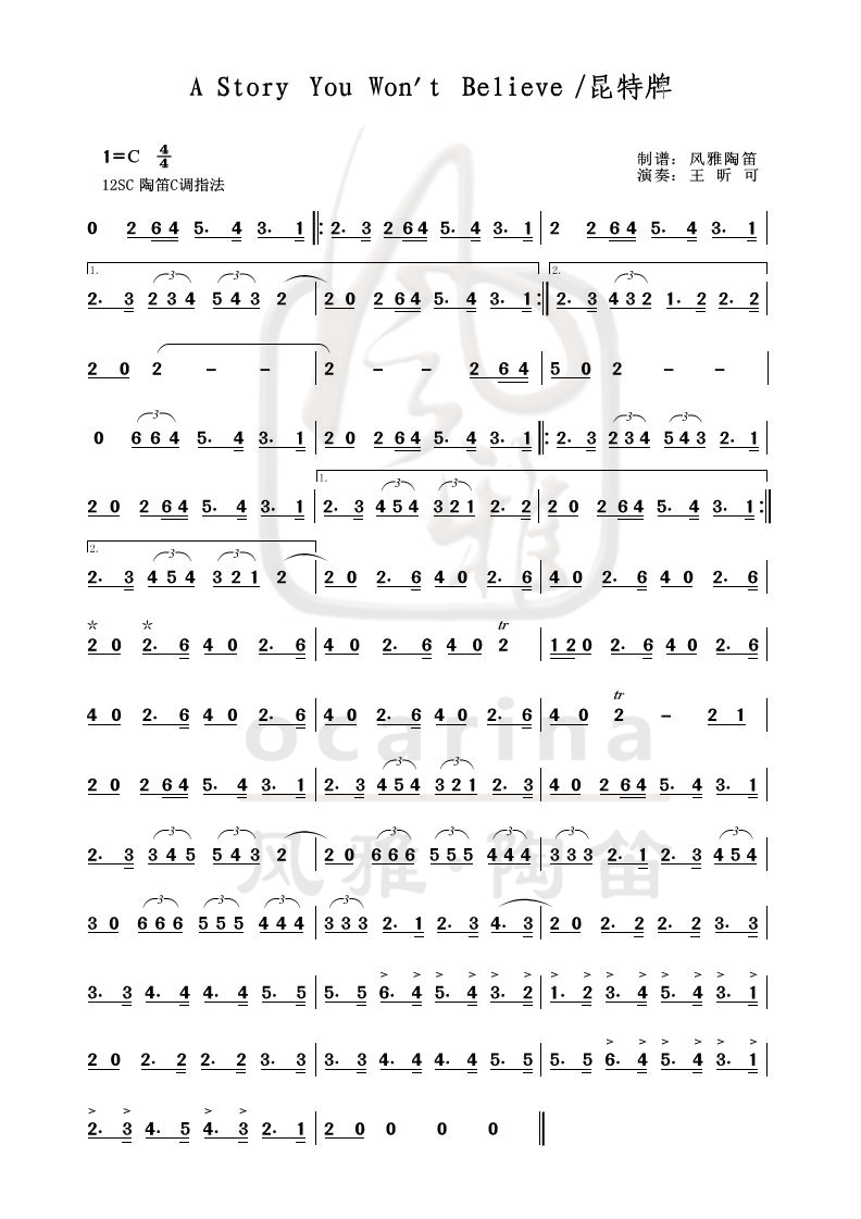 《A Story You Won't Believe昆特牌》曲譜