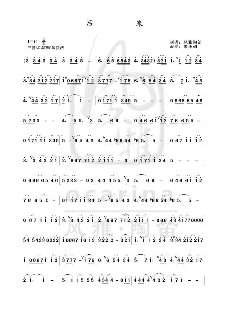 《后來》曲譜