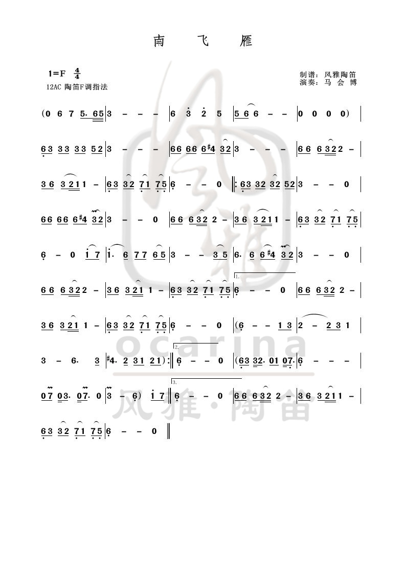 【南飛雁】曲譜