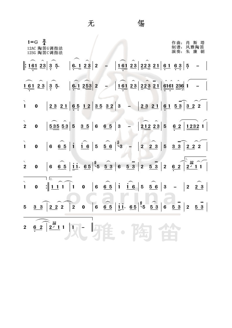 《無錫》曲譜