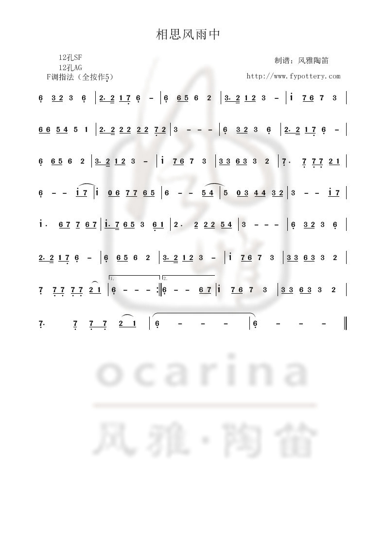 【相思風雨中】曲譜