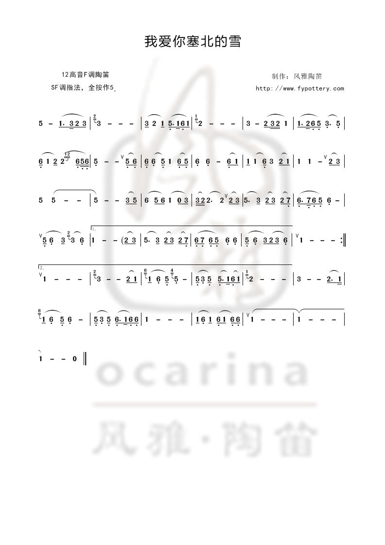 【我愛你塞北的雪】曲譜
