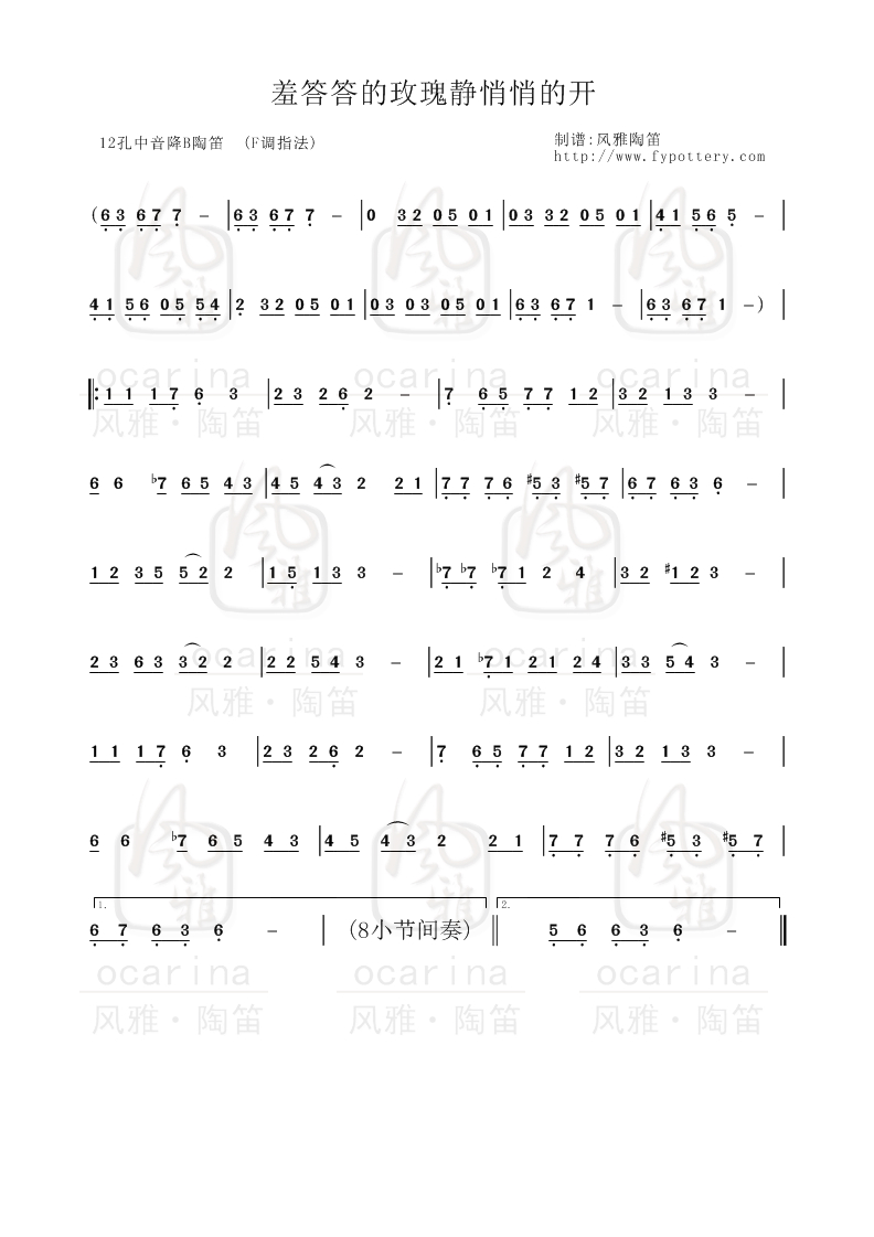 【羞答答的玫瑰靜悄悄的開】曲譜