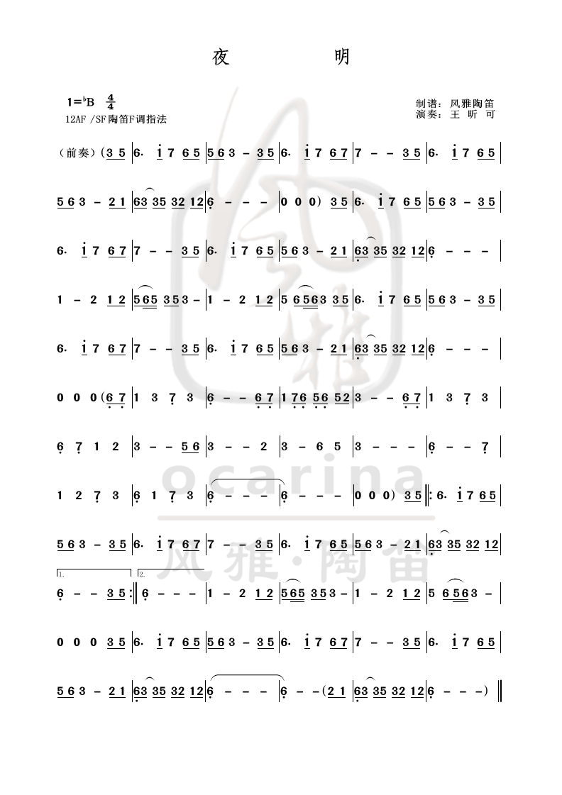 【夜明】曲譜