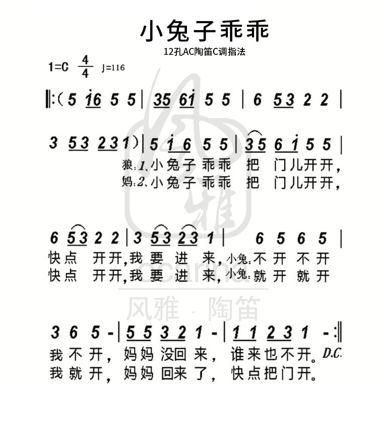 《小兔子乖乖 》C調(diào)伴奏