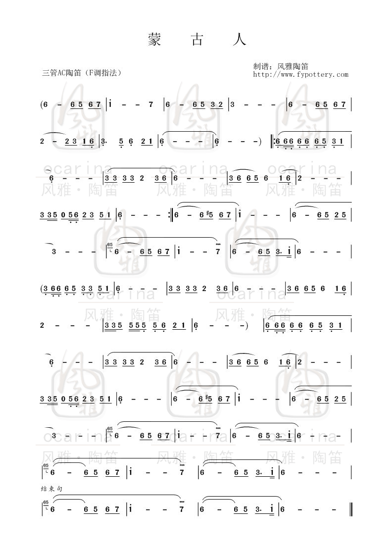 【蒙古人】曲譜