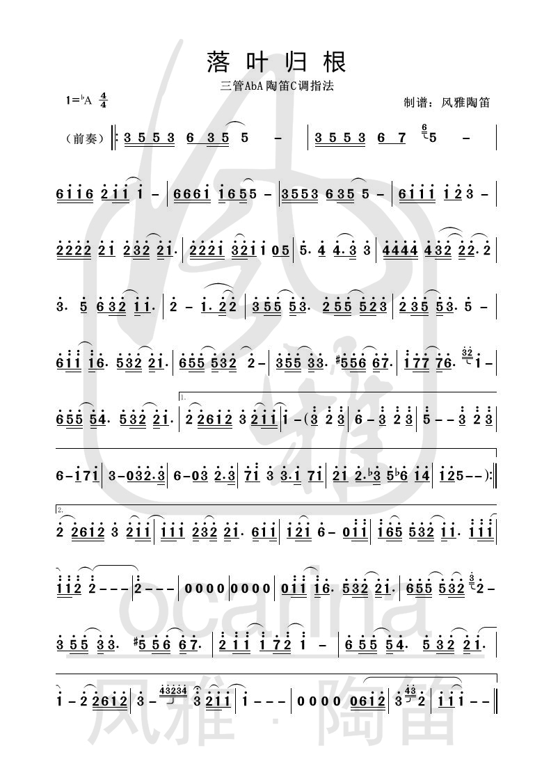 《落葉歸根》曲譜