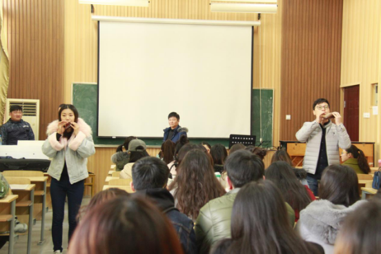 課堂的第一部分由沈老師向到場的幾十位音樂系專業(yè)學生詳細講解陶笛的歷史并親自進行陶笛吹奏示范!